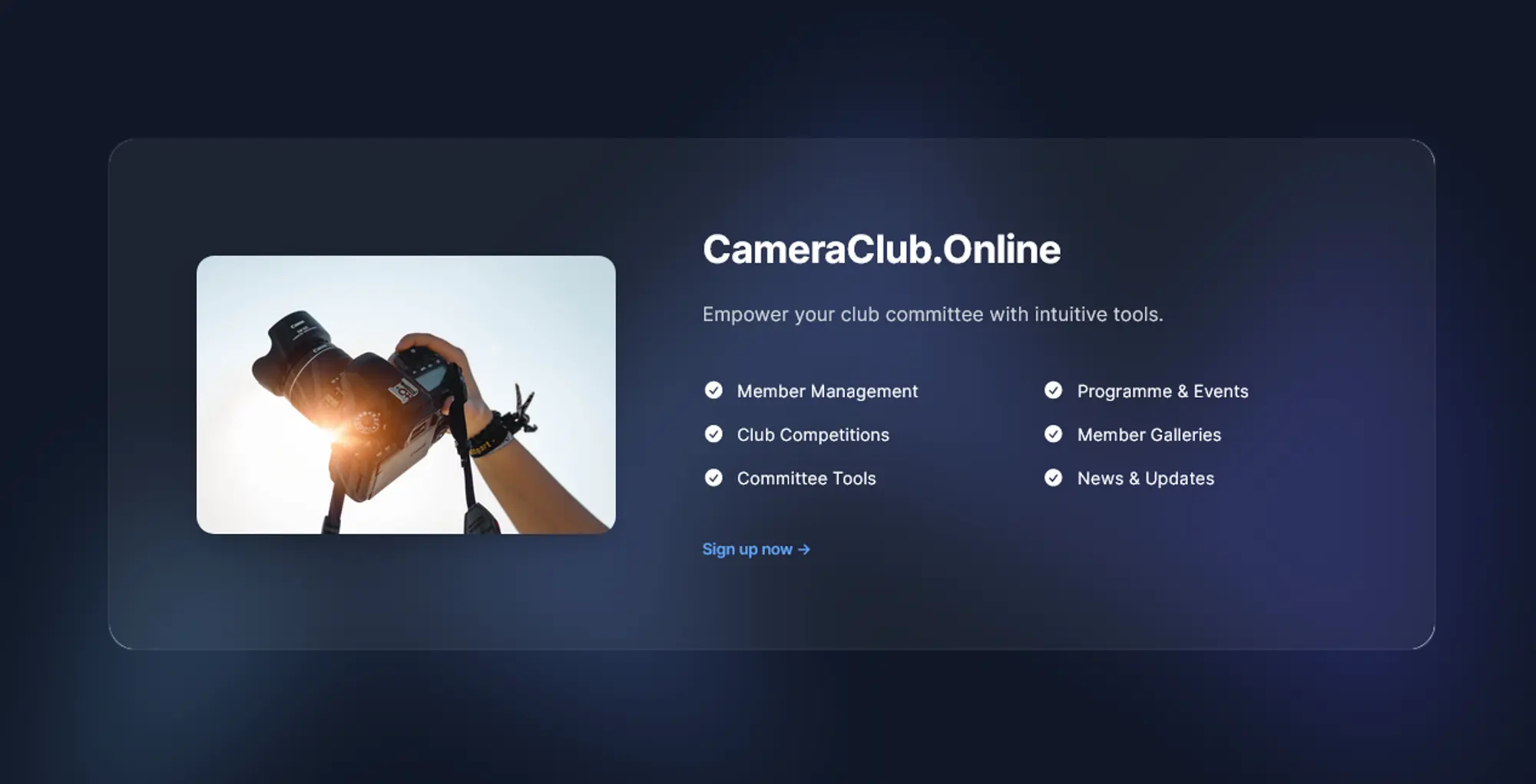 An integrated blog platform allows the club to share news, photography tips, and other relevant content with members and the wider photography community.