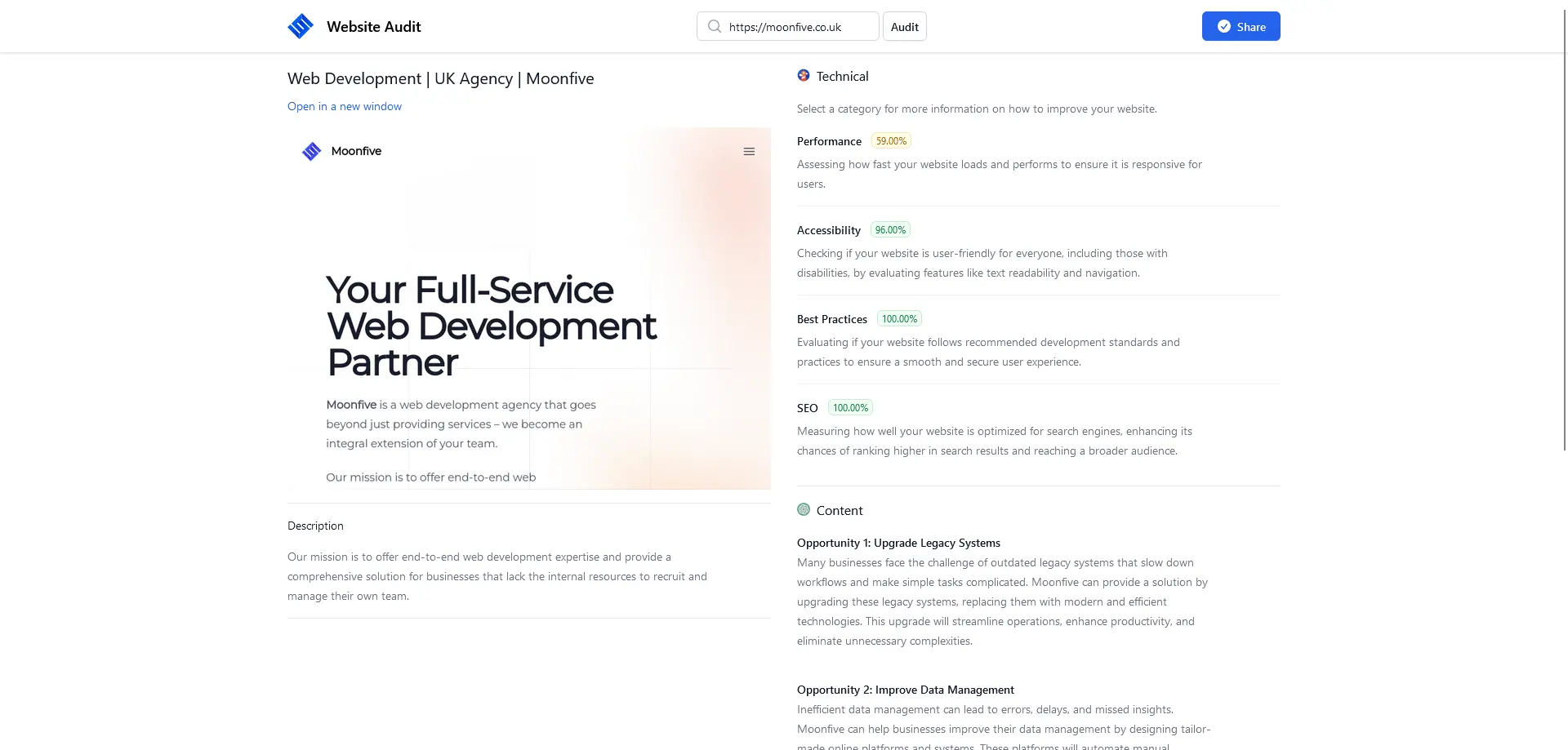 Moonfive’s Free Website Audit Tool: A Case Study – Moonfive – Bespoke CRM Products